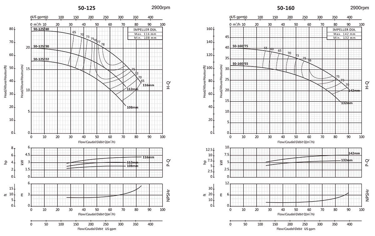 | XA 50-125/40 | 65x50 | 139 | 4 | 5.5 | 24 | - | - | - | - | - | - | 23.1 | 23 | 21.5 | 20.3 | 15.8 | 11.8 | - | - | - | - | - | - |