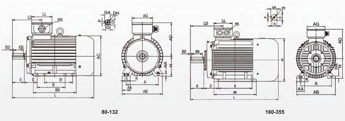 | 132M | 216 | 55 | 265 | 258.4 | 203 | 118 | 178 | 224 | 89 | 38 | M12X28 | 80 | 65 | 7.5 | 10 | 33 | 41 | 132 | 18 | 4-f12 | 2-M32X1.5 | 476 | 172 | 110 |
